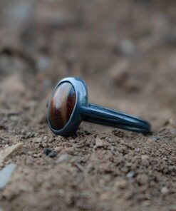 Anello Tiger’s eyes in argento935 con finitura brunita, con pietra naturale, occhio di tigre incassata a mano.