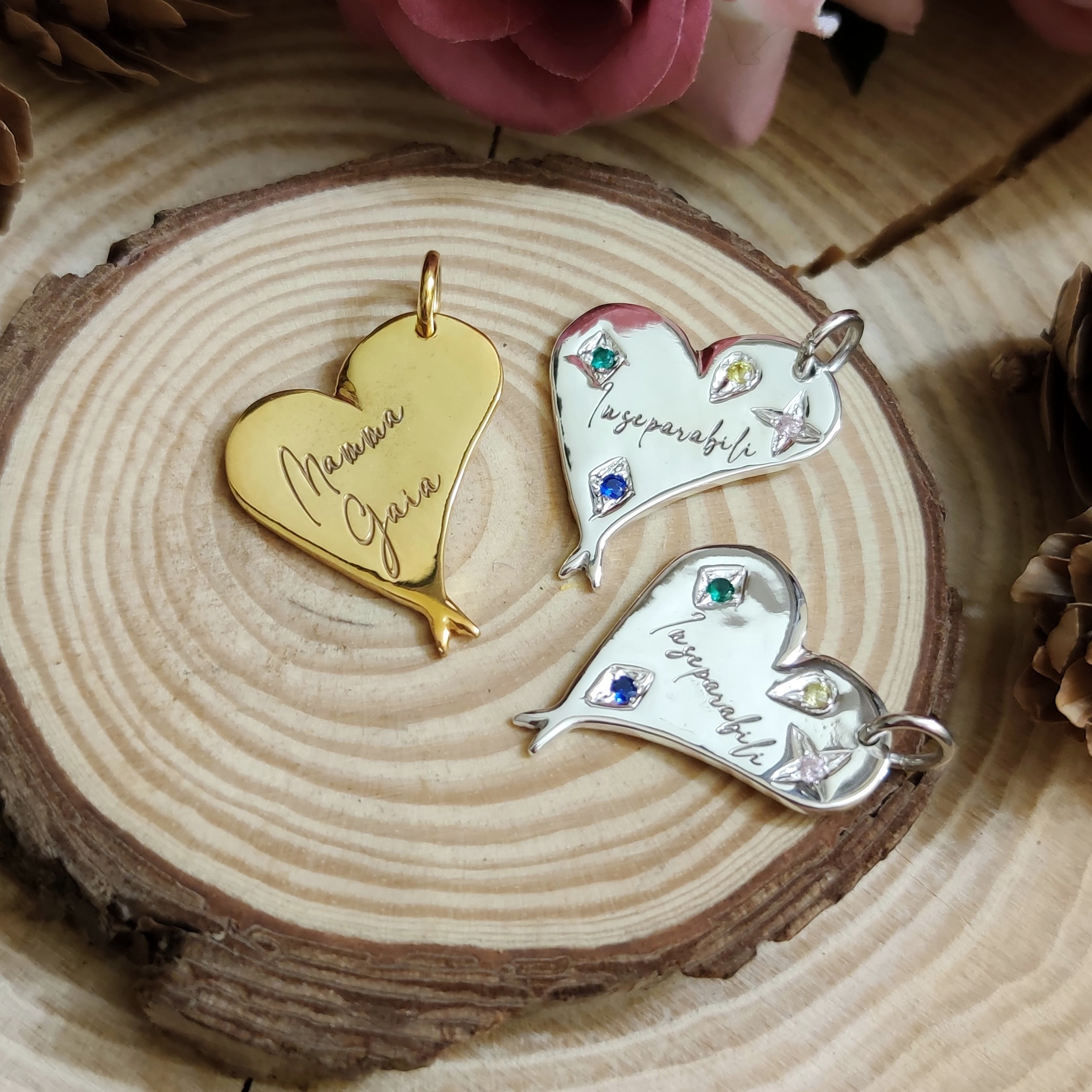 E’ possibile personalizzarlo con un’ incisione sul cuore (in omaggio) e anche dietro al cuore. Possiamo incidere una data, due nomi, iniziali, numeri, parole…