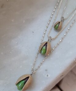 Ciondolo pistacchio tridimensionale, realizzato interamente a mano nel nostro laboratorio GF Jewels. Un gioiello che richiama forme naturali, lavorato con cura per ottenere un effetto realistico e piacevole da indossare ogni giorno.
