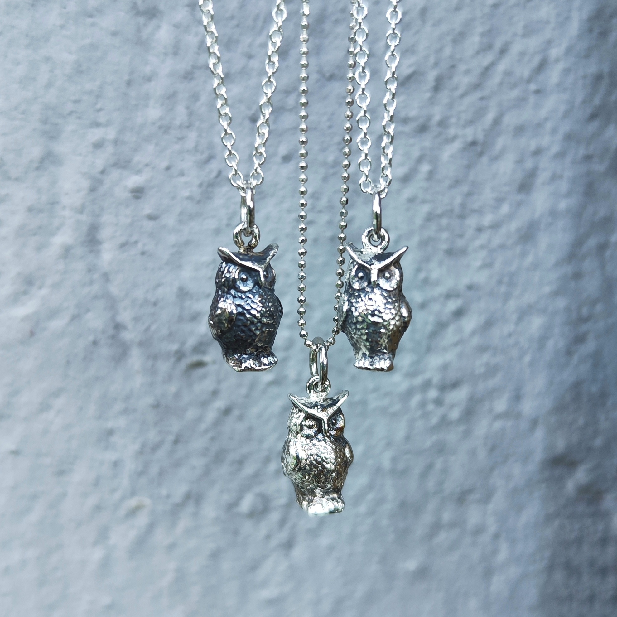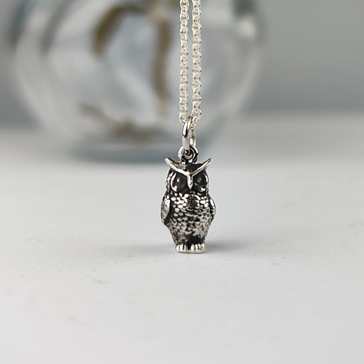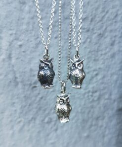 Collana con charm gufetto. Charm realizzato artigianalmente da noi in argento 935, collana caratterizzata da un affascinante ciondolo a forma di gufo. Questo gioiello unico è è una nostra creazione artigianale evidente nei dettagli finemente lavorati del gufo, simbolo di saggezza e protezione.